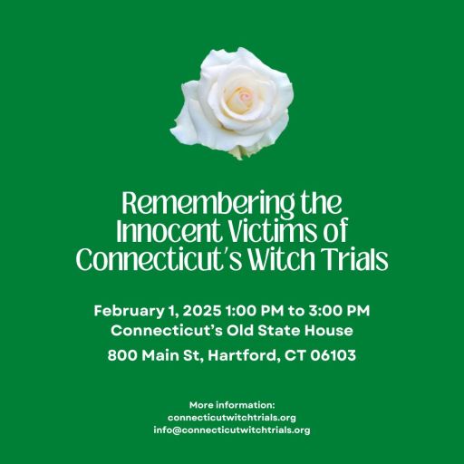 On February 1, 2025, the Connecticut Witch Trial Exoneration Project hosted the inaugural Remembering the Innocent Victims of the Connecticut Witch Trials event at the Old State House in Hartford.
